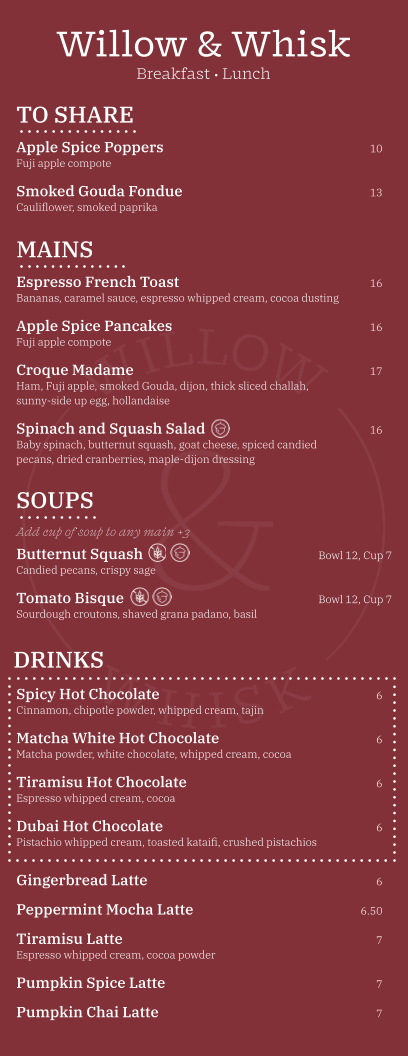 Rolled oats, almond milk, chia seeds, fuji apple, cinnamon, nutmeg. Topped with dried cranberries, banana, walnuts (Gluten-free, Vegan, Dairy-free, Contains nuts)