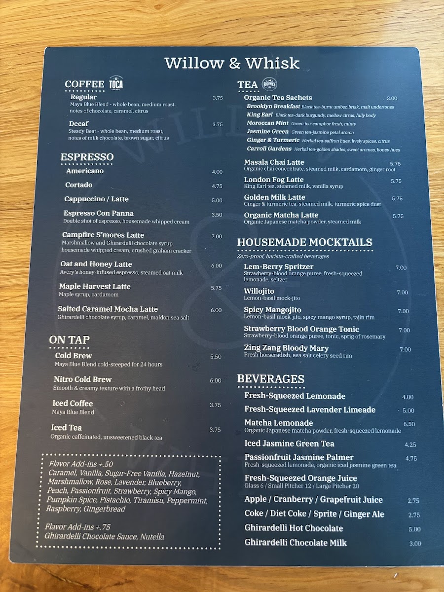 Glass $6, Small Pitcher $12, Large Pitcher $20