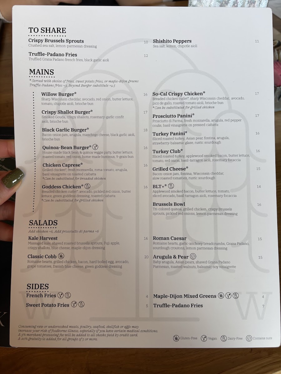 Tri-colored quinoa, grilled chicken, crispy Brussels sprouts, pickled red onions, lemon parmesan dressing